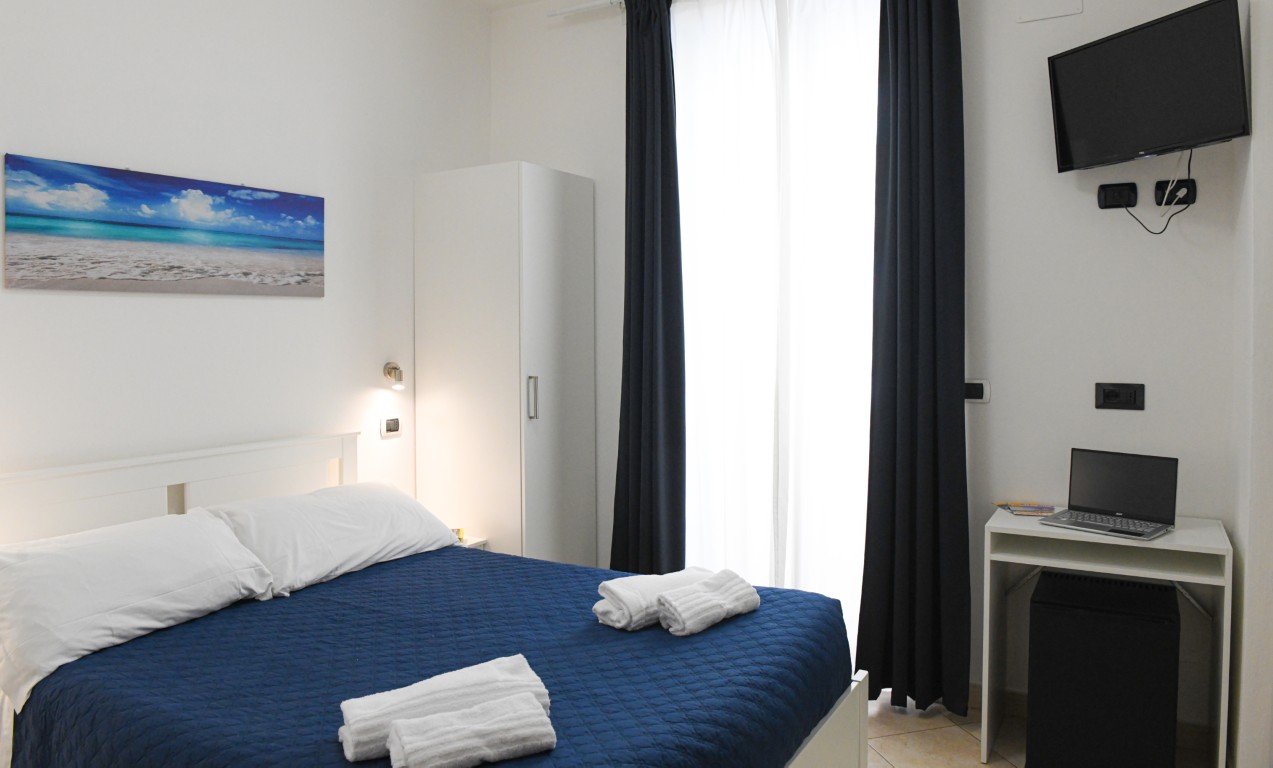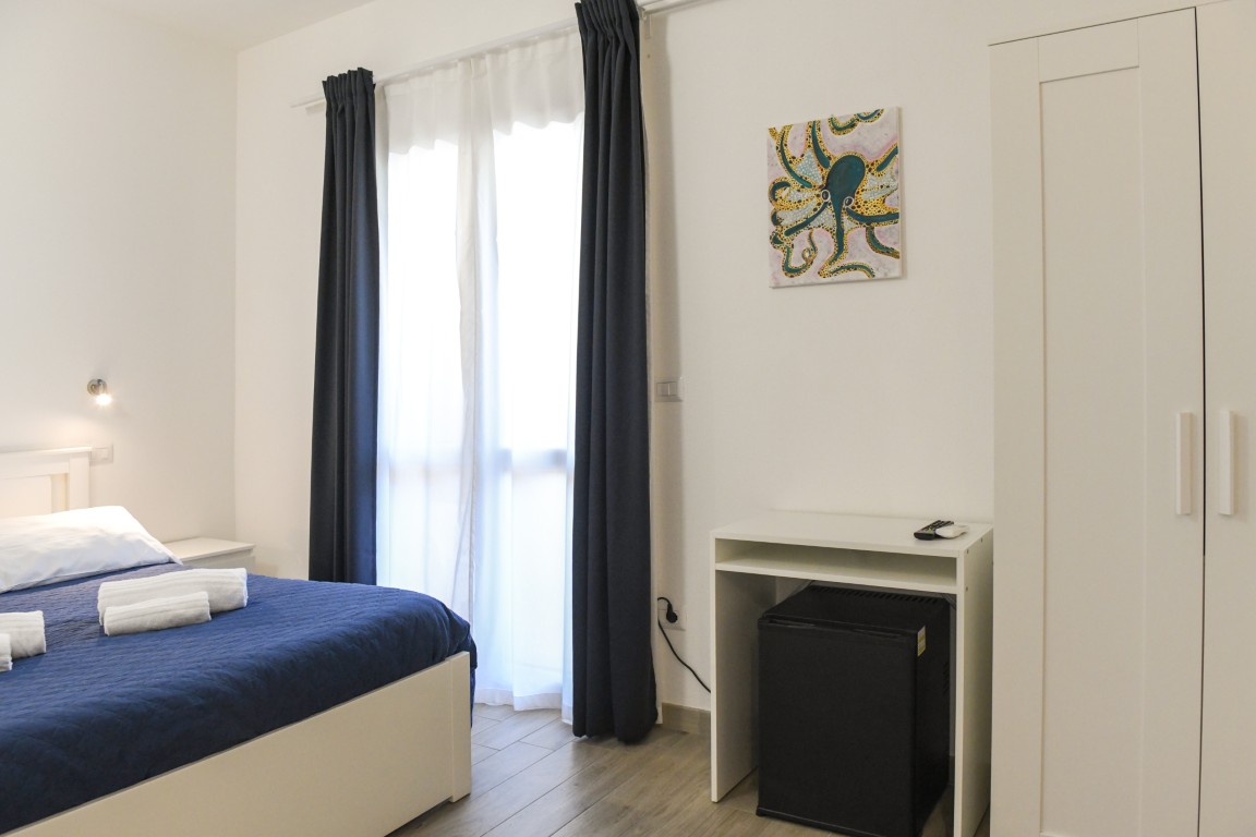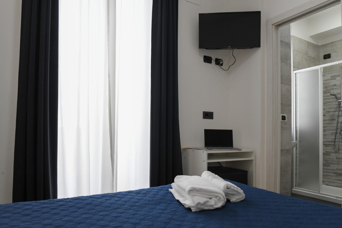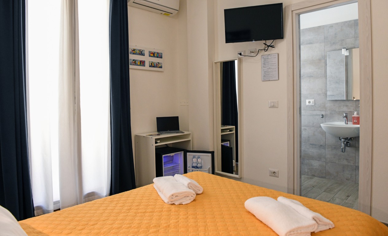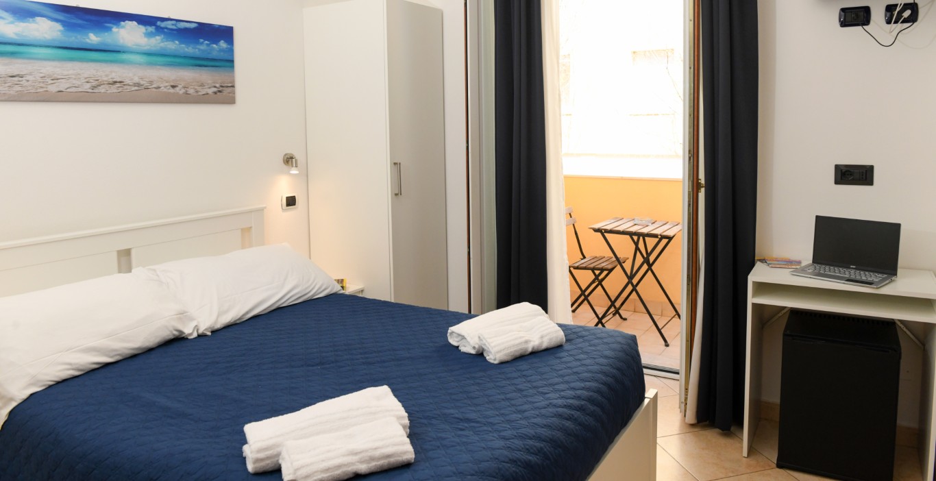 Camera dotata di bagno privato con doccia, aria condizionata, riscaldamento, TV digitale terreste, TV satellitare, frigobar, cassaforte, balcone privato attrezzato.