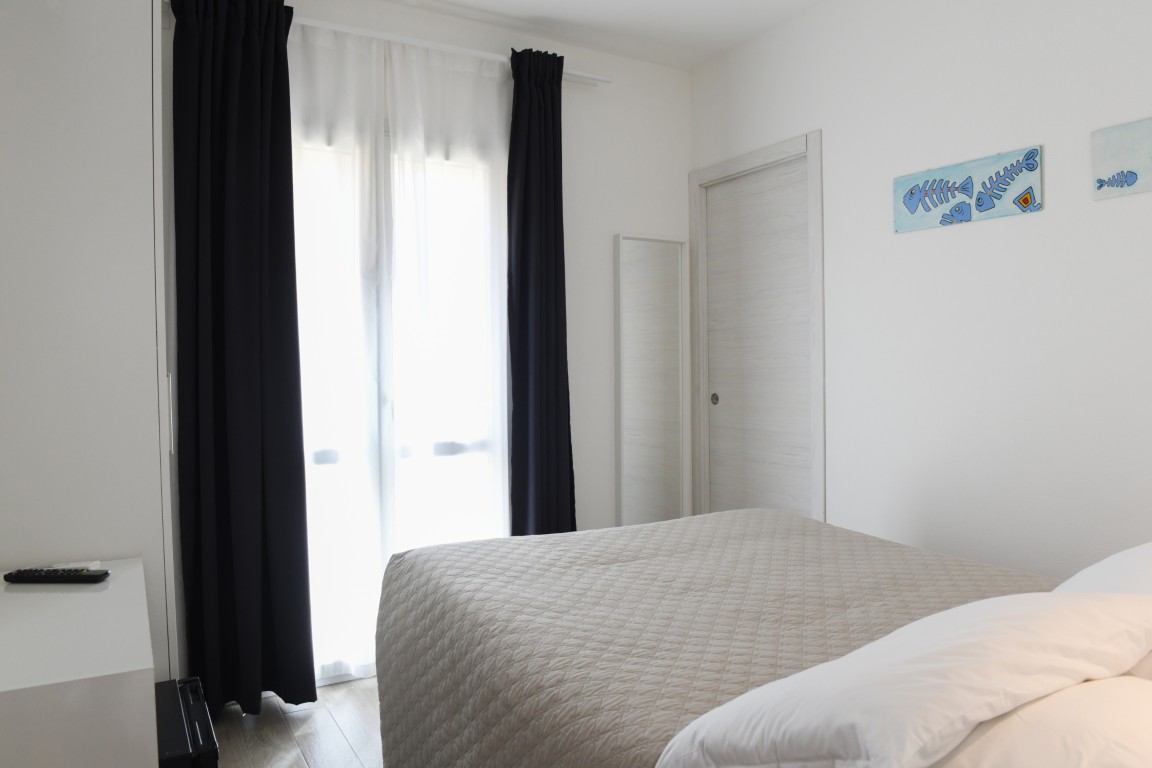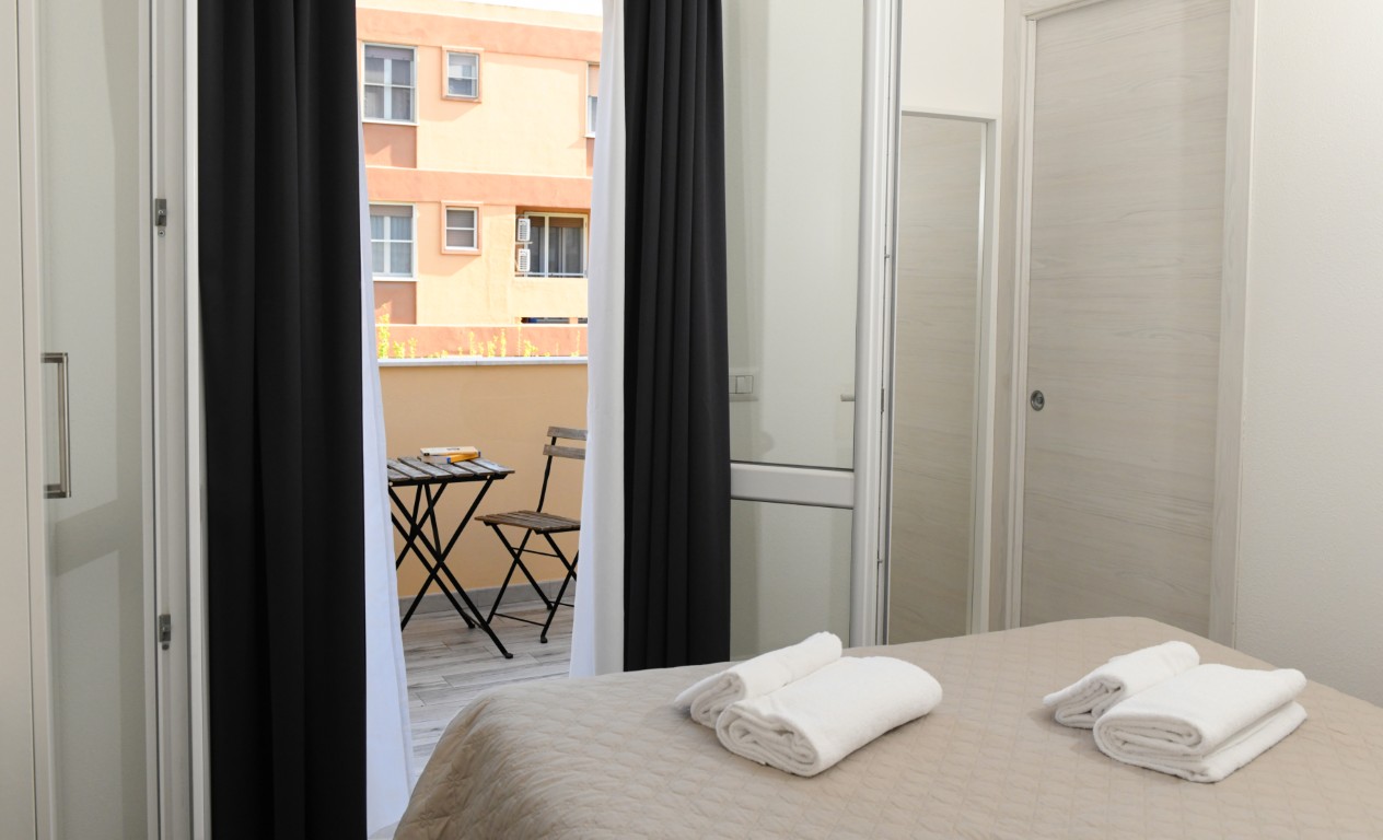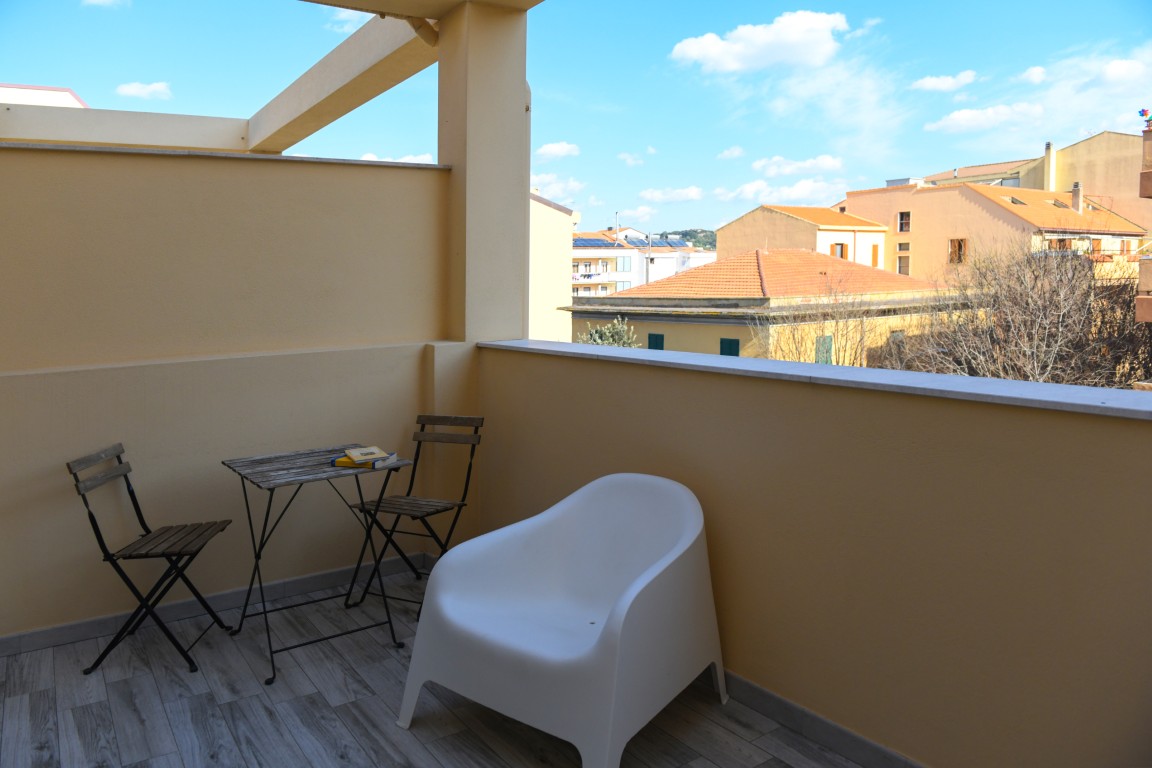 Camera ubicata all'ultimo piano e dotata di bagno privato con doccia, aria condizionata, riscaldamento, TV digitale terreste, TV satellitare, frigobar, cassaforte, ampia terrazza attrezzata.