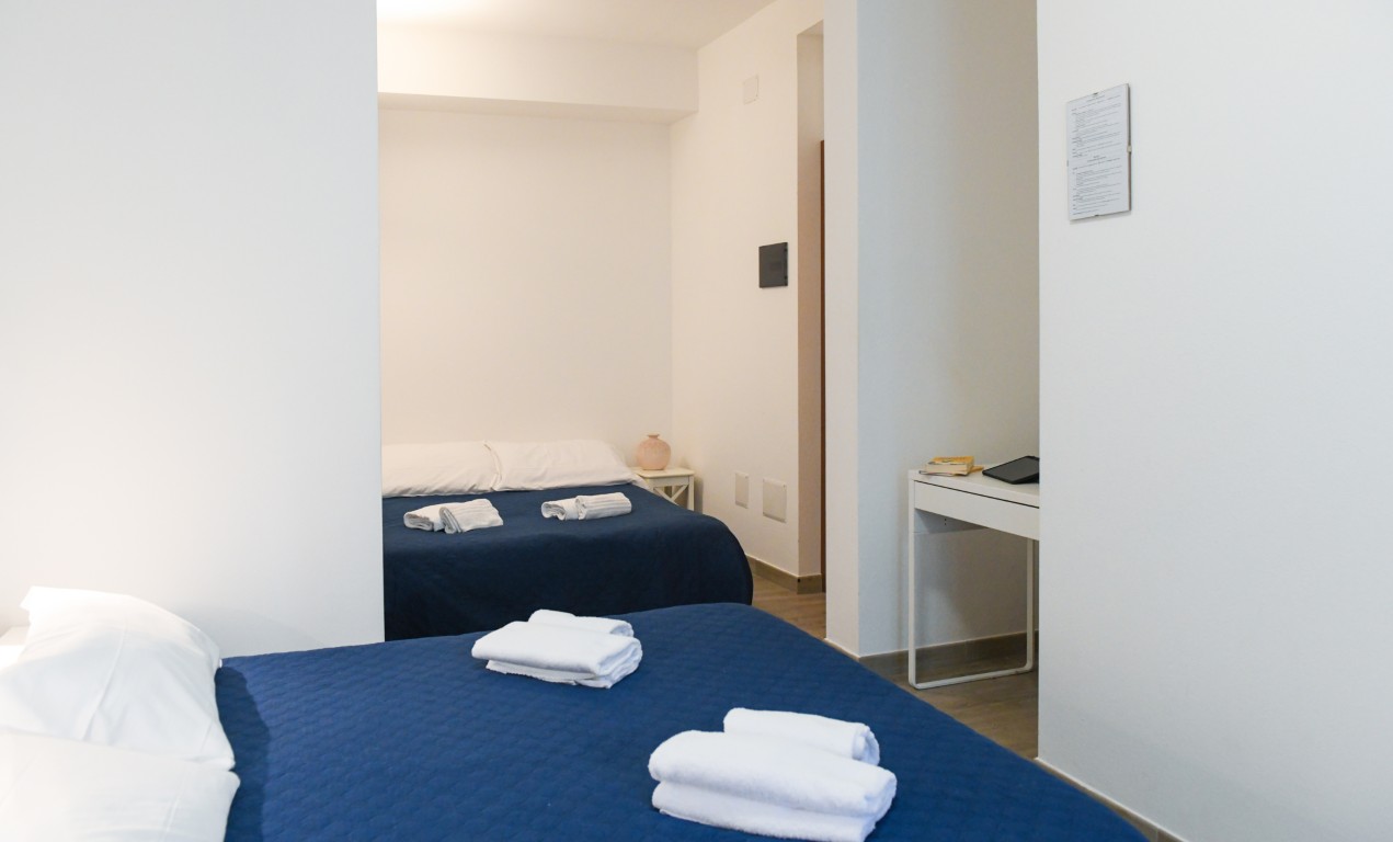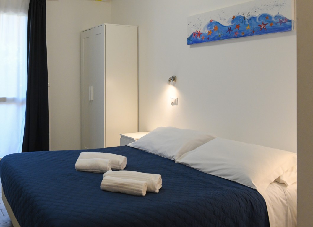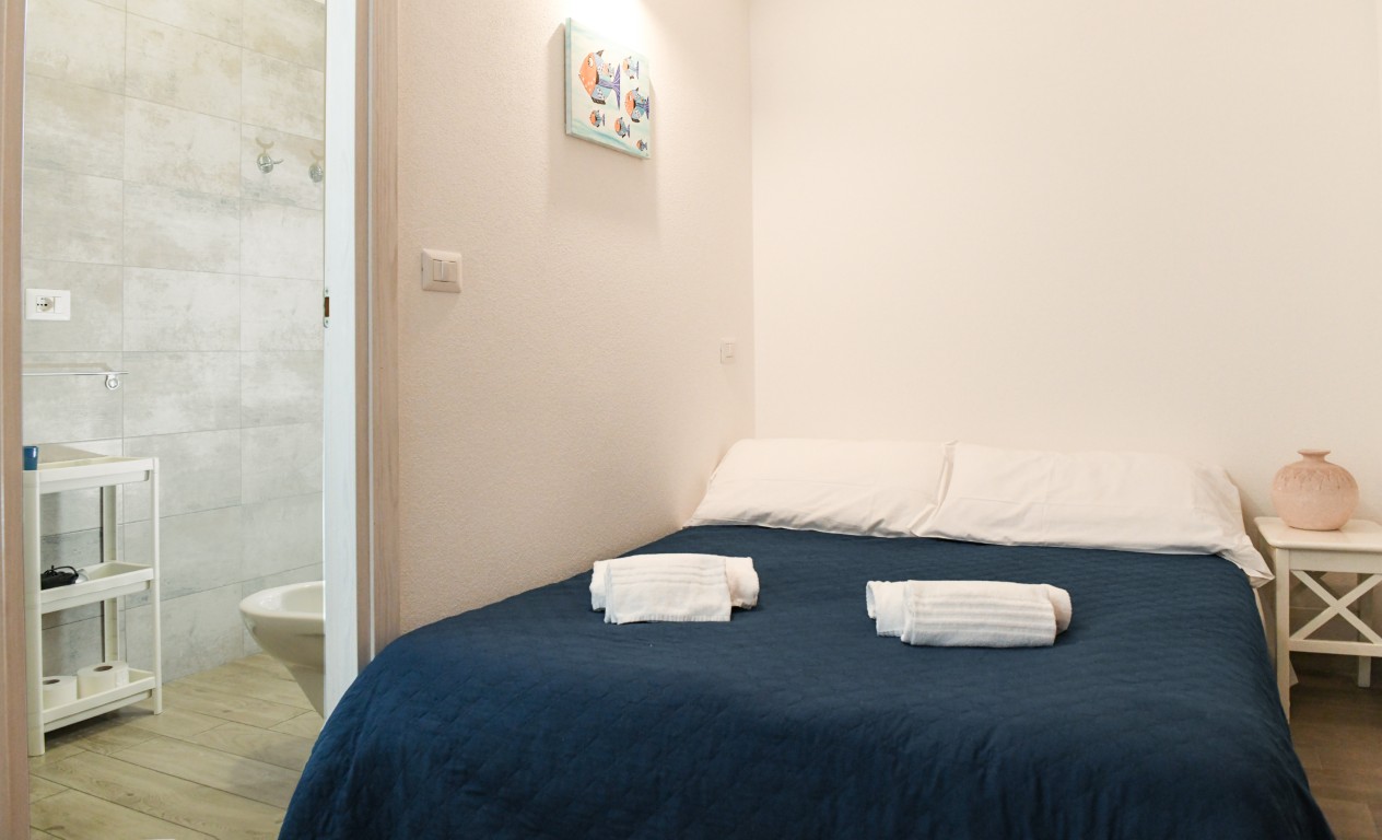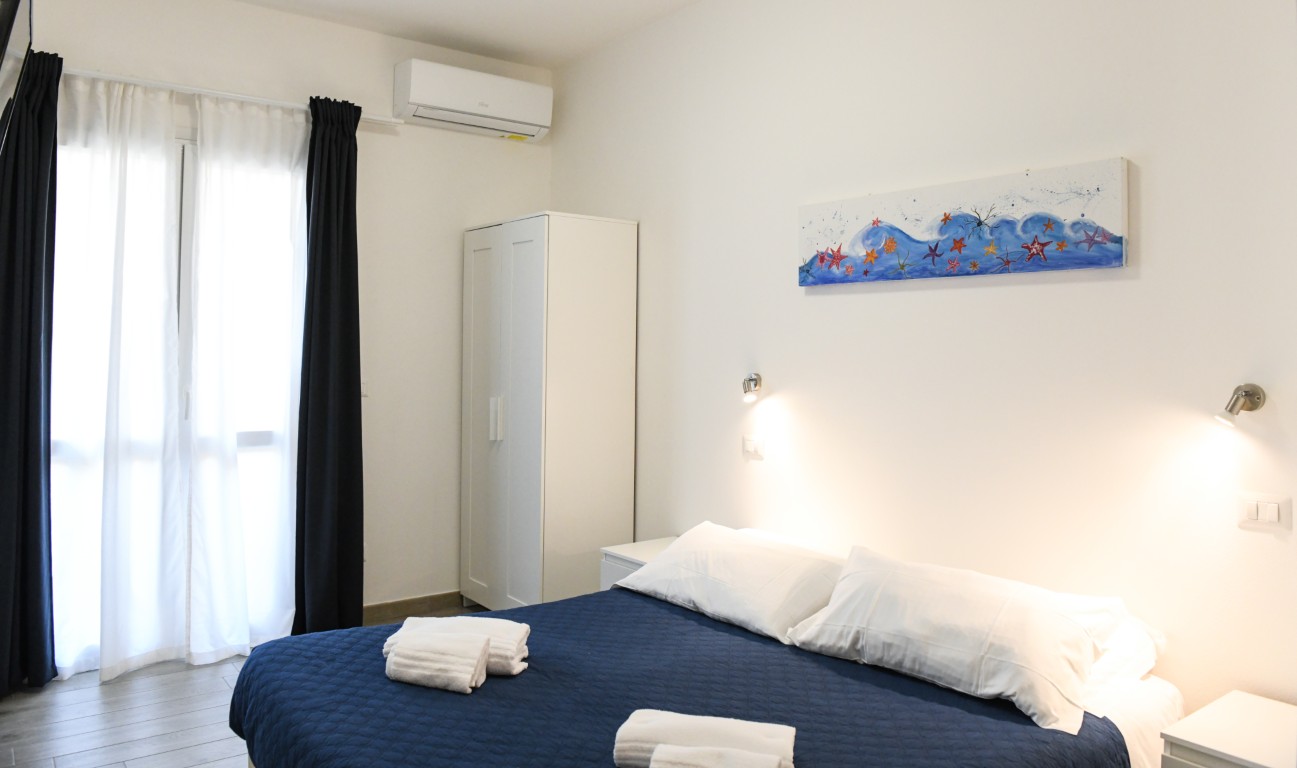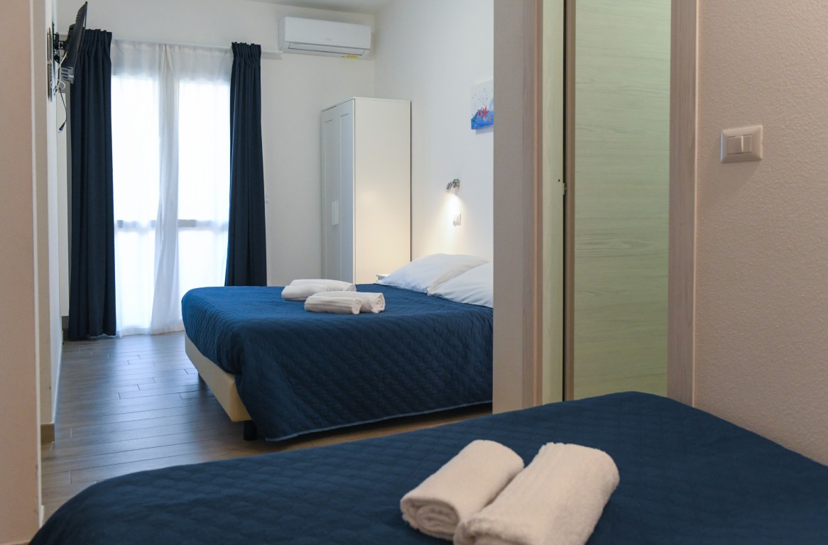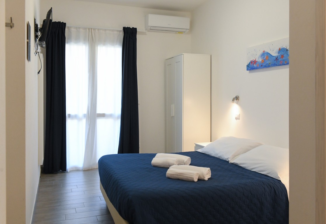 Camera dotata di letto matrimoniale e divano letto matrimoniale alla francese, bagno privato con doccia, aria condizionata, riscaldamento, TV digitale terreste, TV satellitare, frigobar, cassaforte, balcone privato attrezzato.